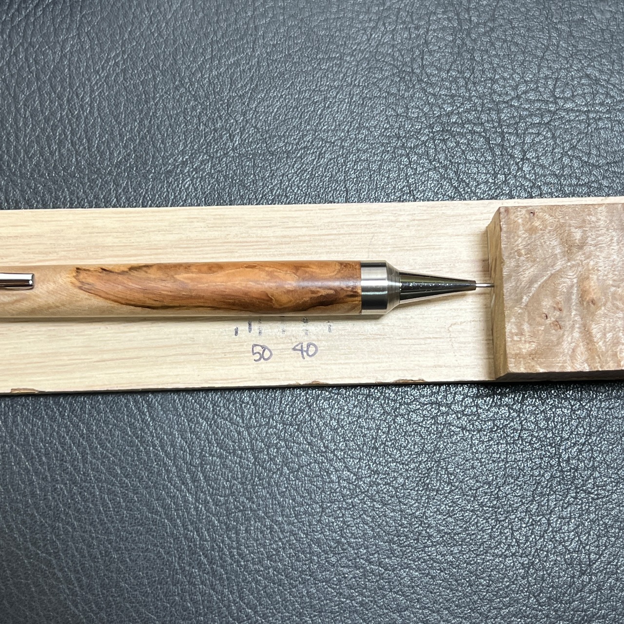 栃の赤身と白太の部分で作ったシャーペンです。