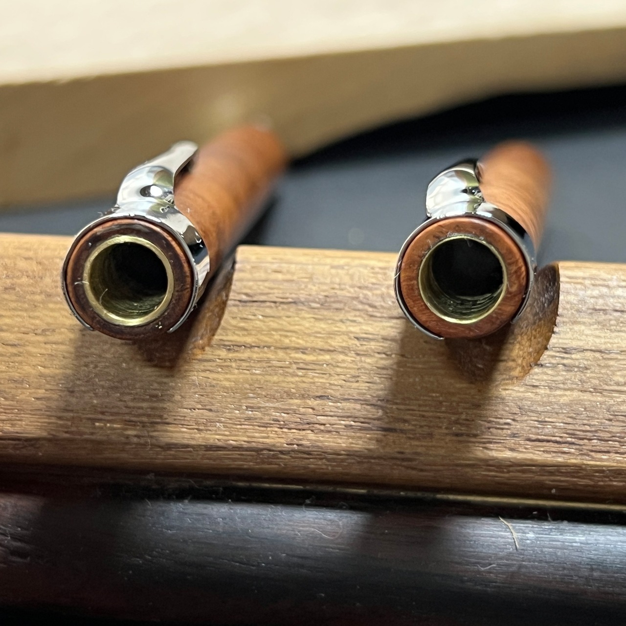 見た目は同じですが、ペン尻側からみると真鍮パイプの肉厚が違います。