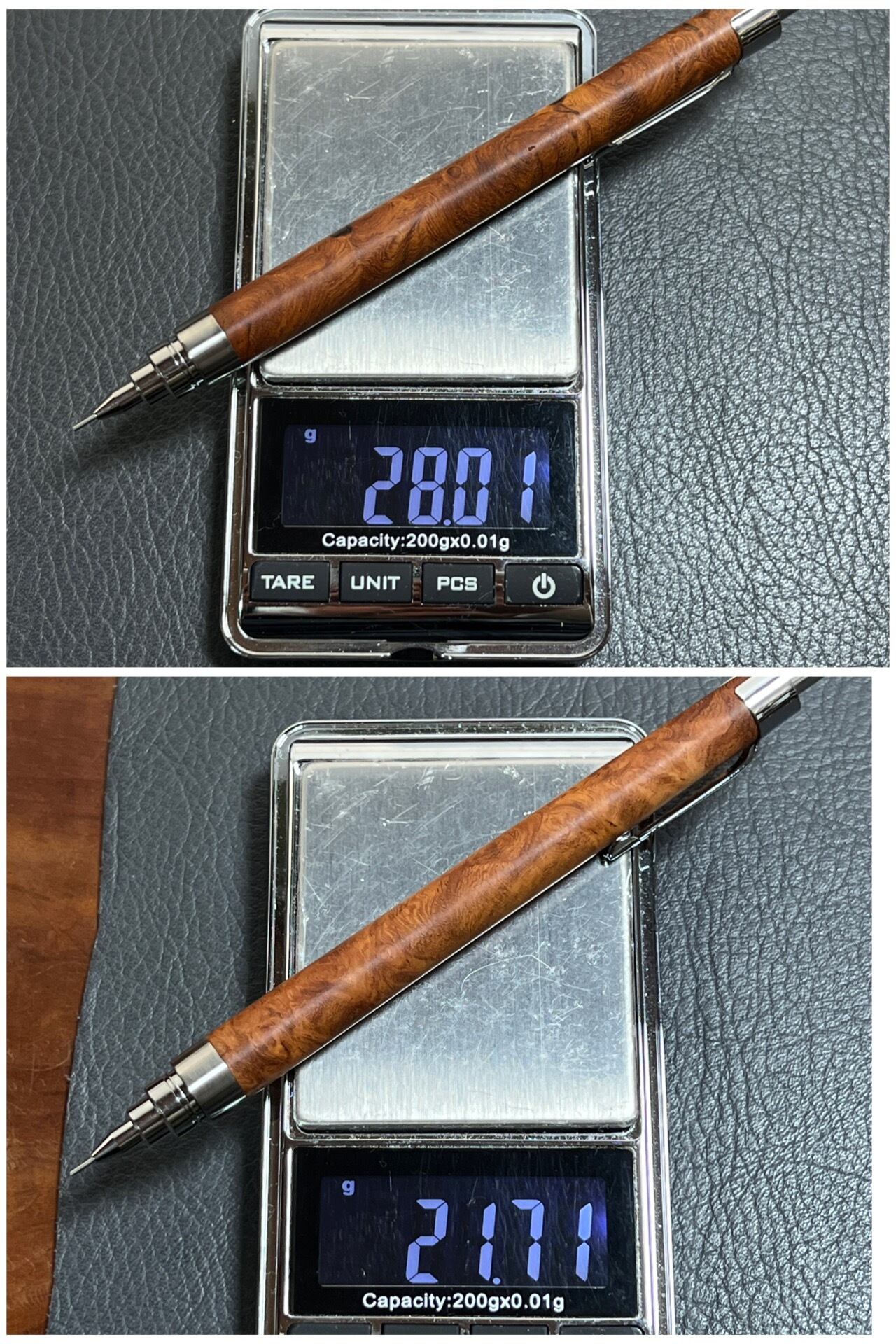 328花梨瘤 木製シャーペン 低重心 通常より軽量タイプ ステンレス