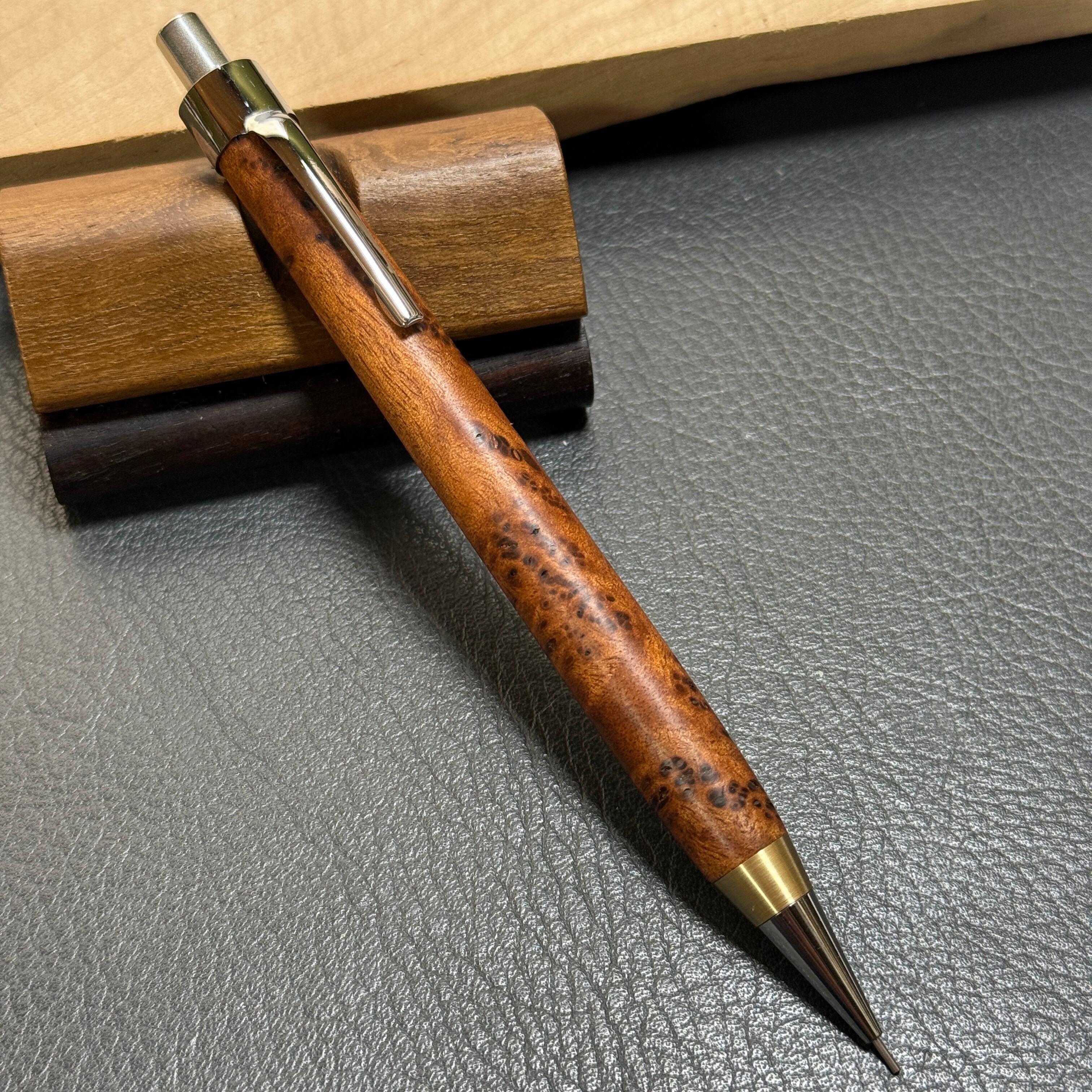 349台湾樟ぶどう杢 木製シャーペン 強低重心真鍮