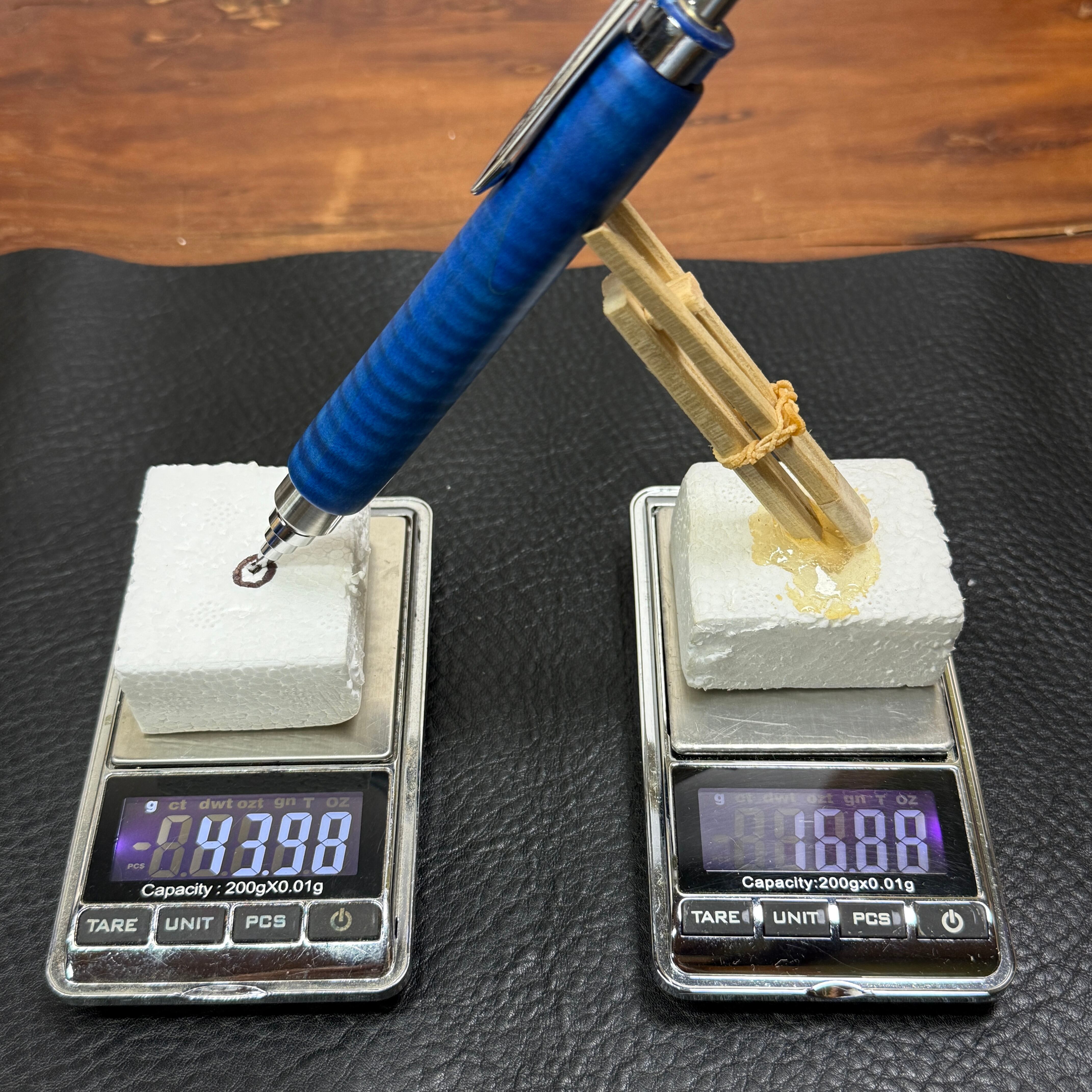 手のひらに乗せると重たいのですが、低重心で作っていますので、書く時には紙面にほとんど重さが移って、ペンの重さで書ける感じです。