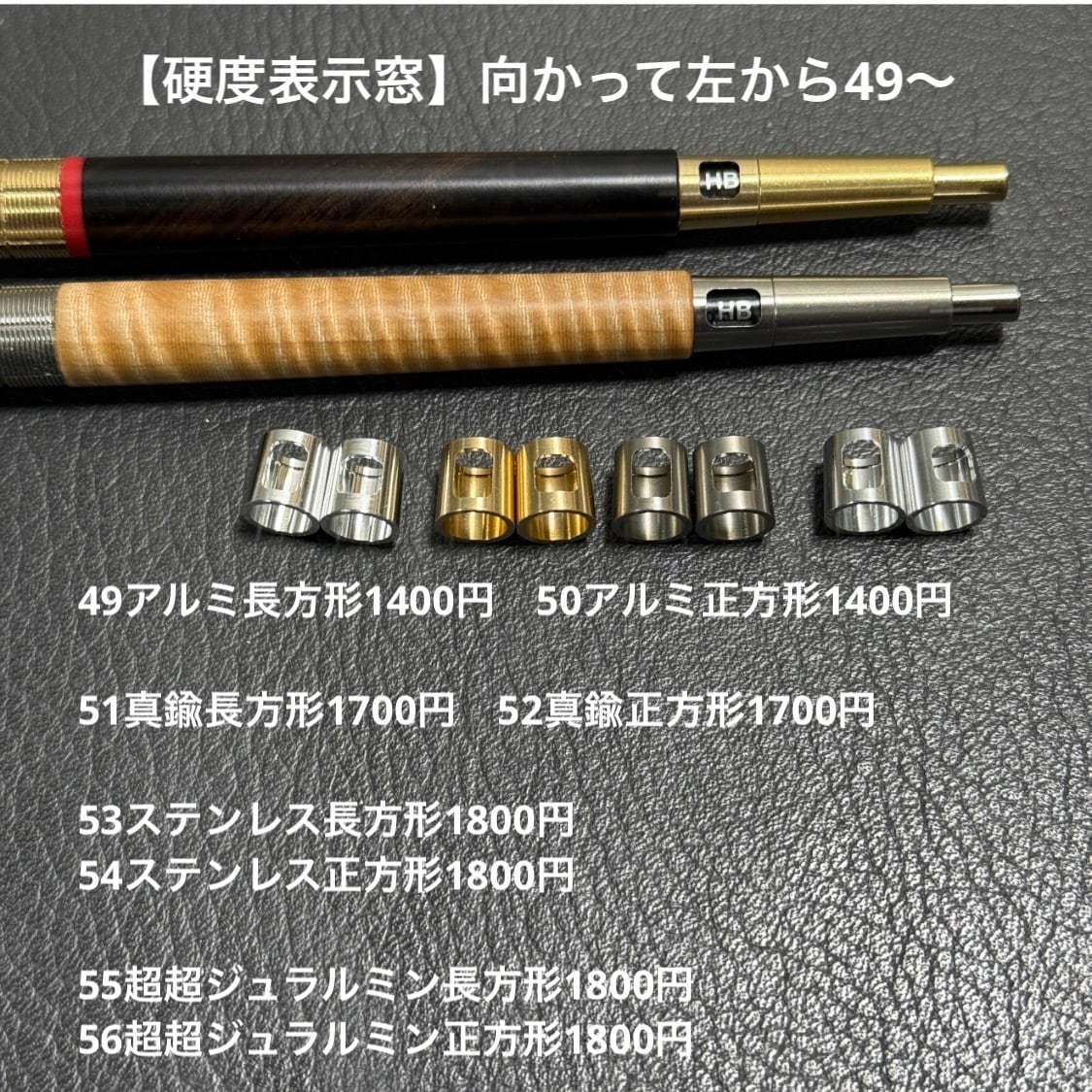 ステンレス・真鍮に加えて、新たに仲間入りした超超ジュラルミン(A7075)はジュラルミンの中でも最高クラスの強度と硬度を持ち、零戦の機体にも使われていた軽くて強い素材です。(詳しくはネット等でお調べくださいませ)