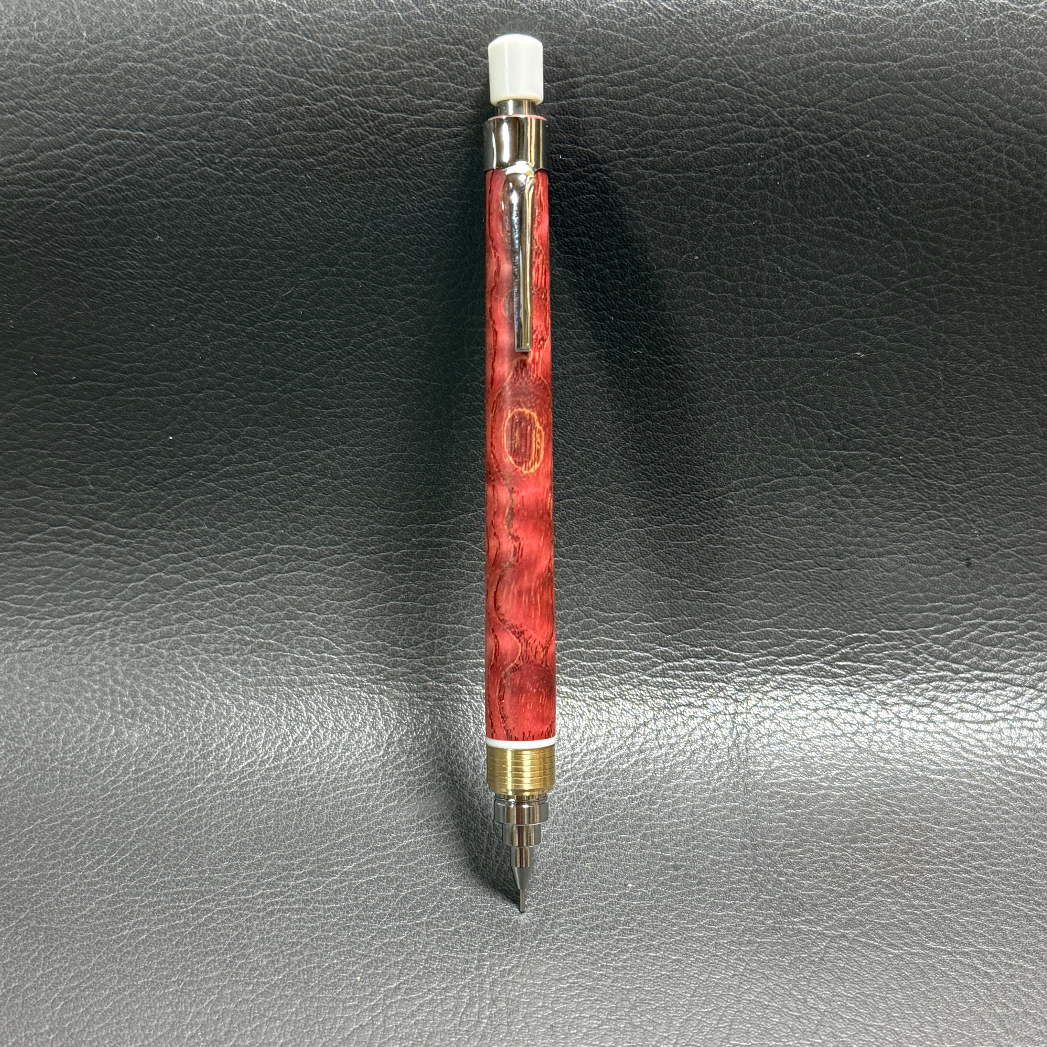 561タモ波杢スタビ 木製シャーペン 超低重心溝つき 真鍮 コーリアンキャップつき