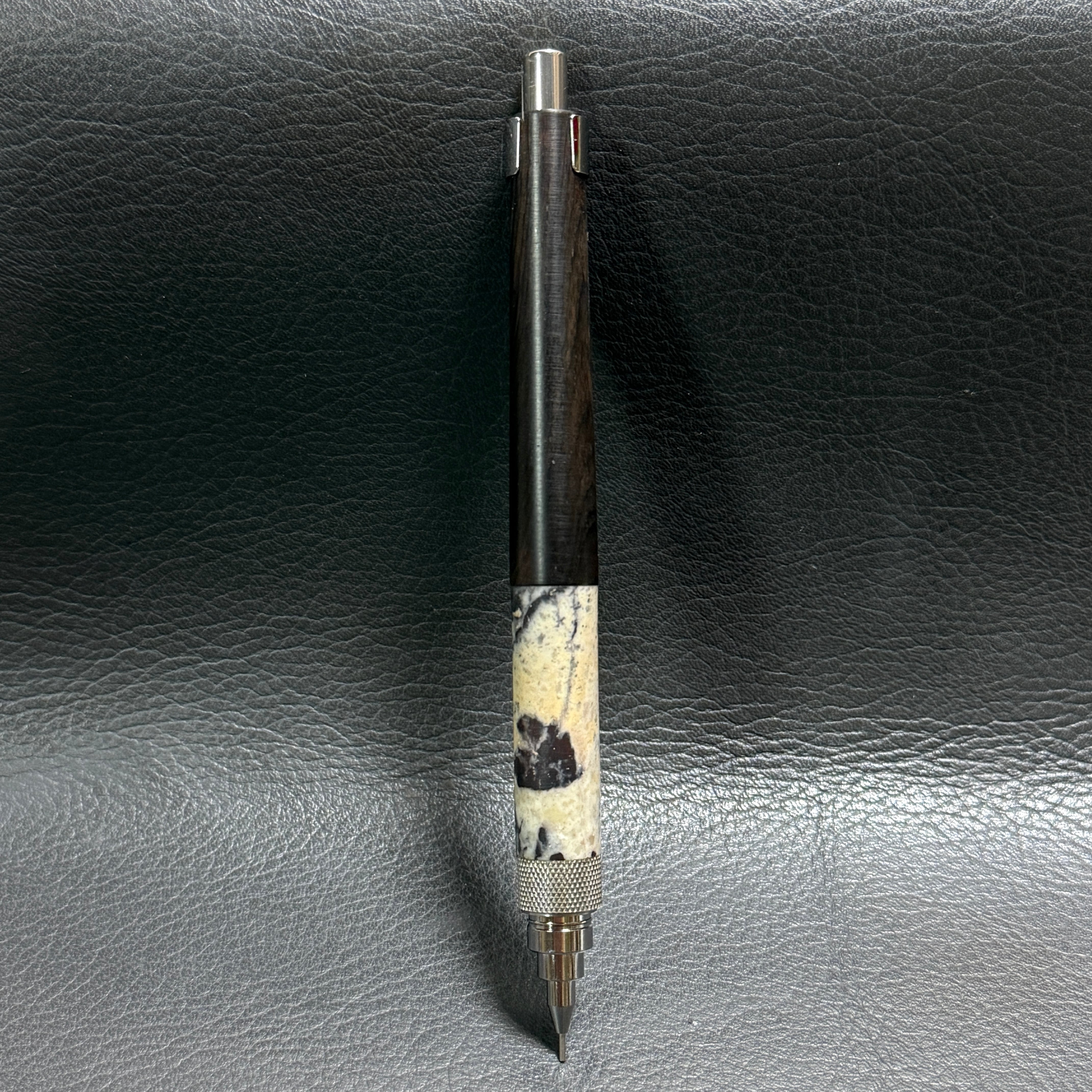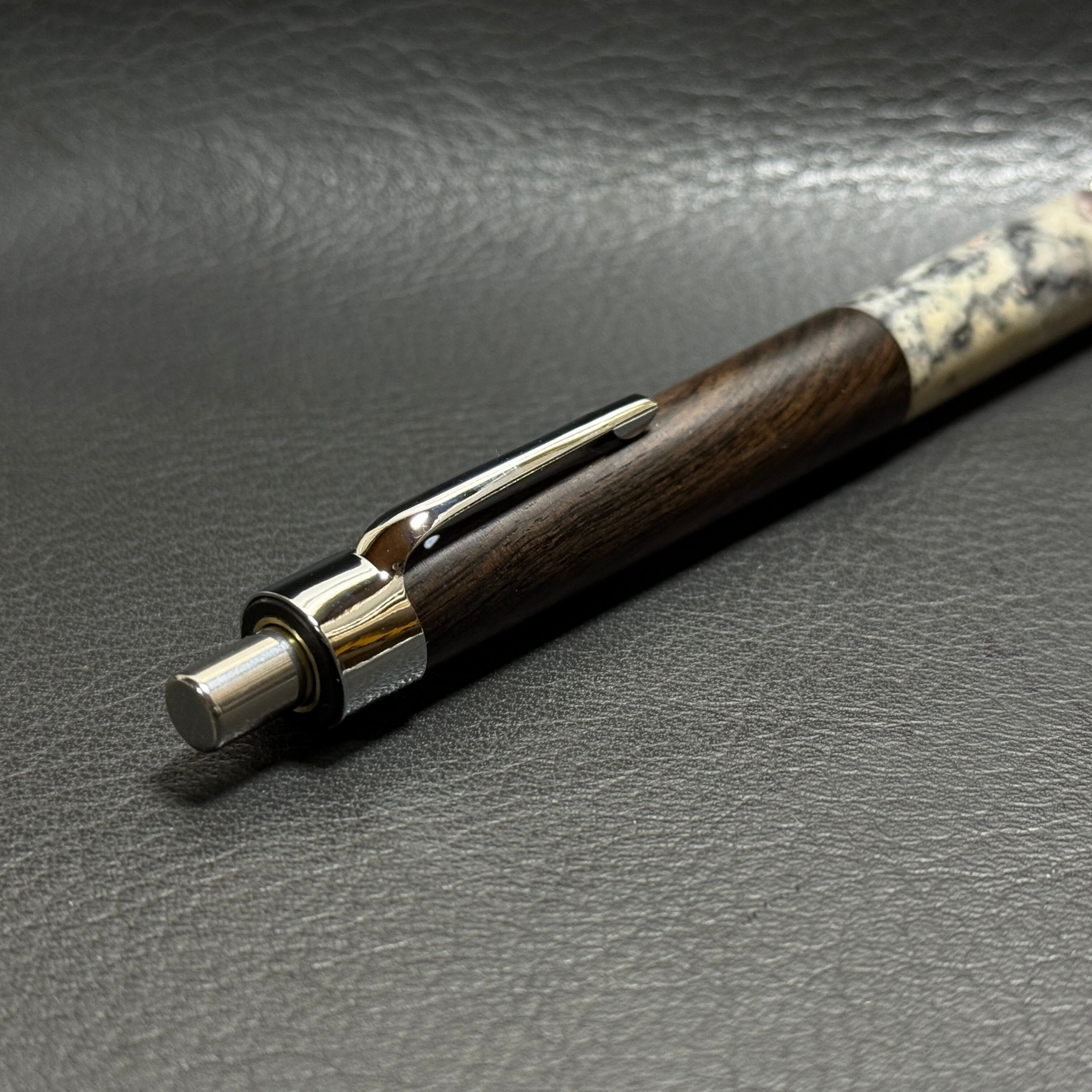 【特別枠】③印材(石)・アフリカンブラックウッド 超低重心ローレット ステンレス