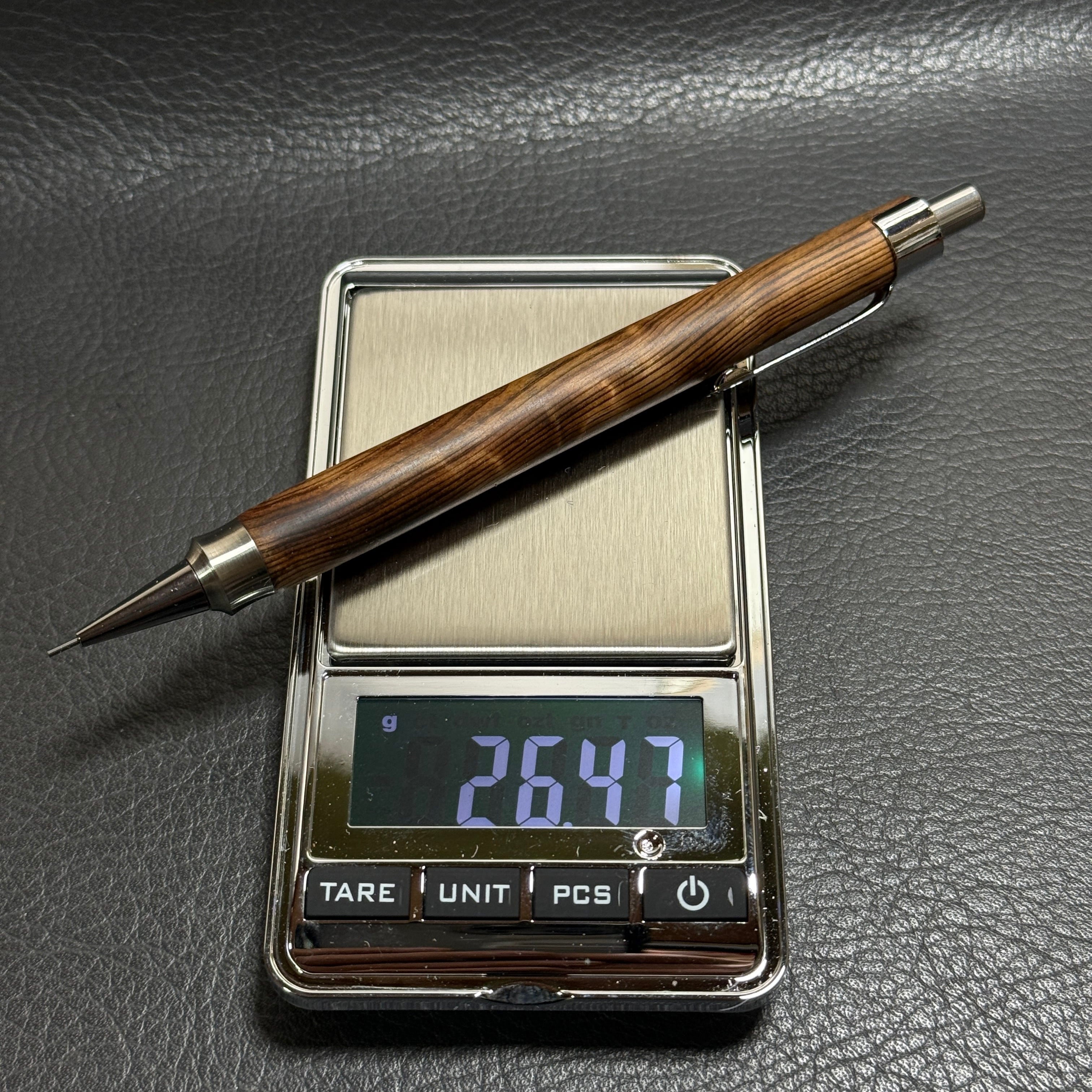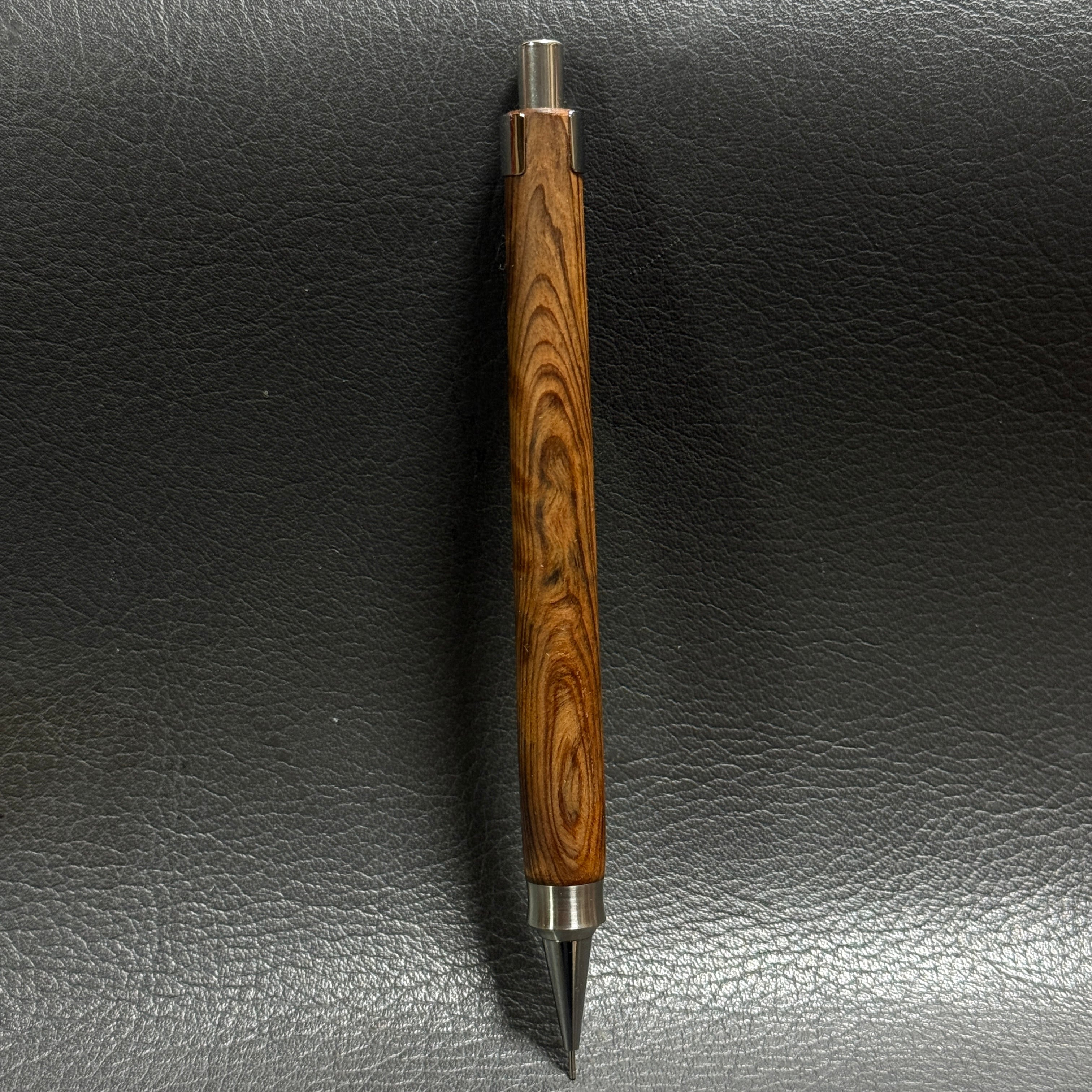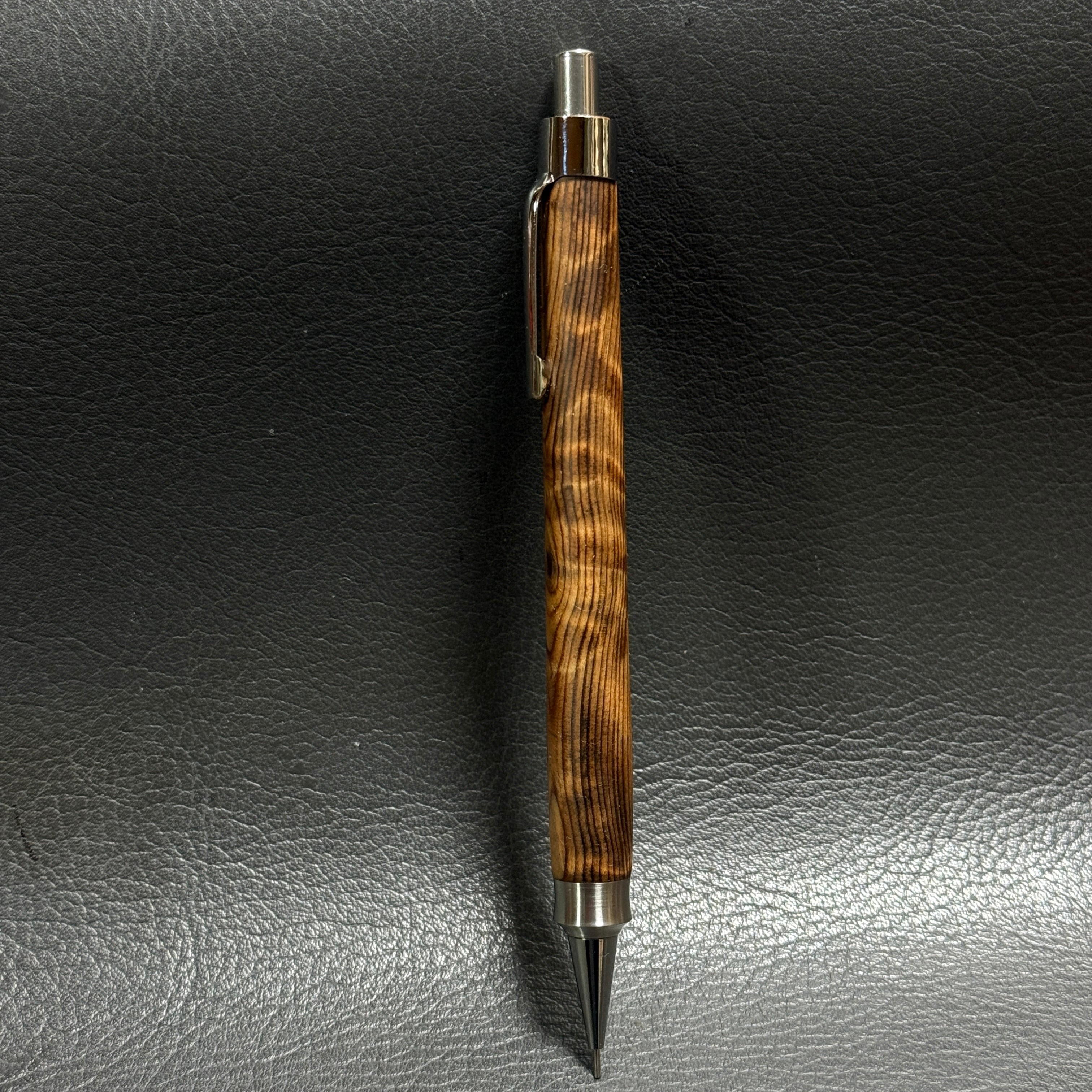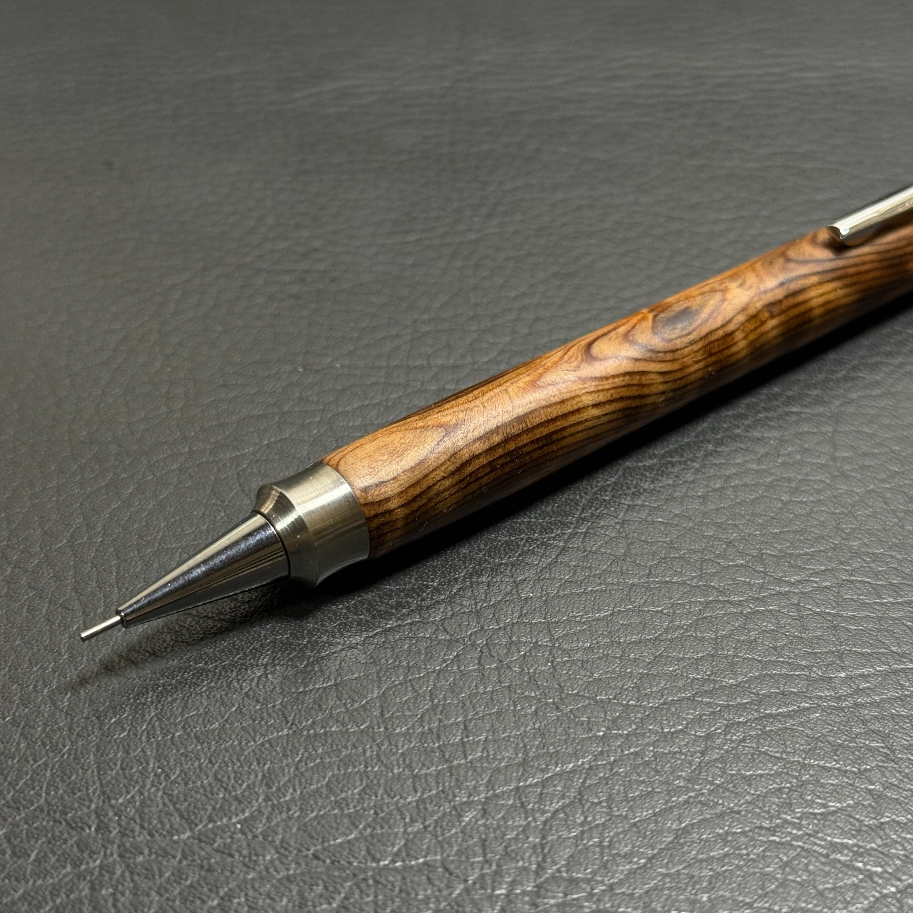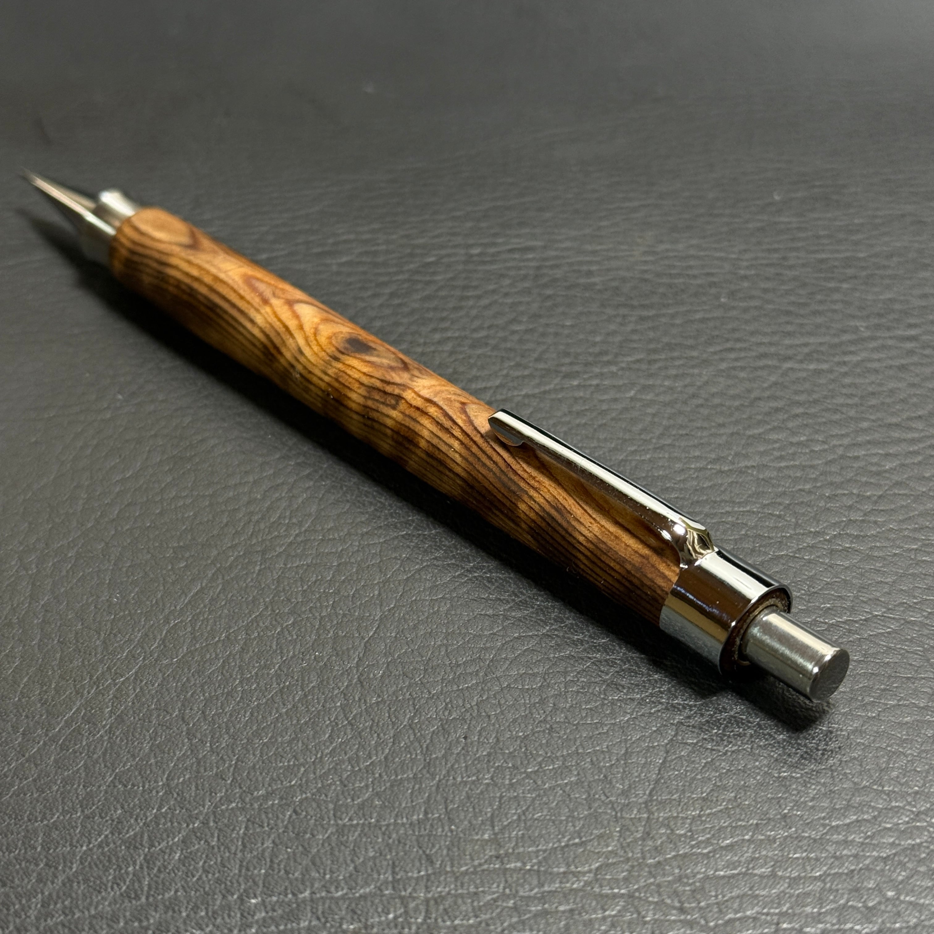 588屋久杉油木トラ杢 木製シャーペン 強低重心ダブルR ステンレス