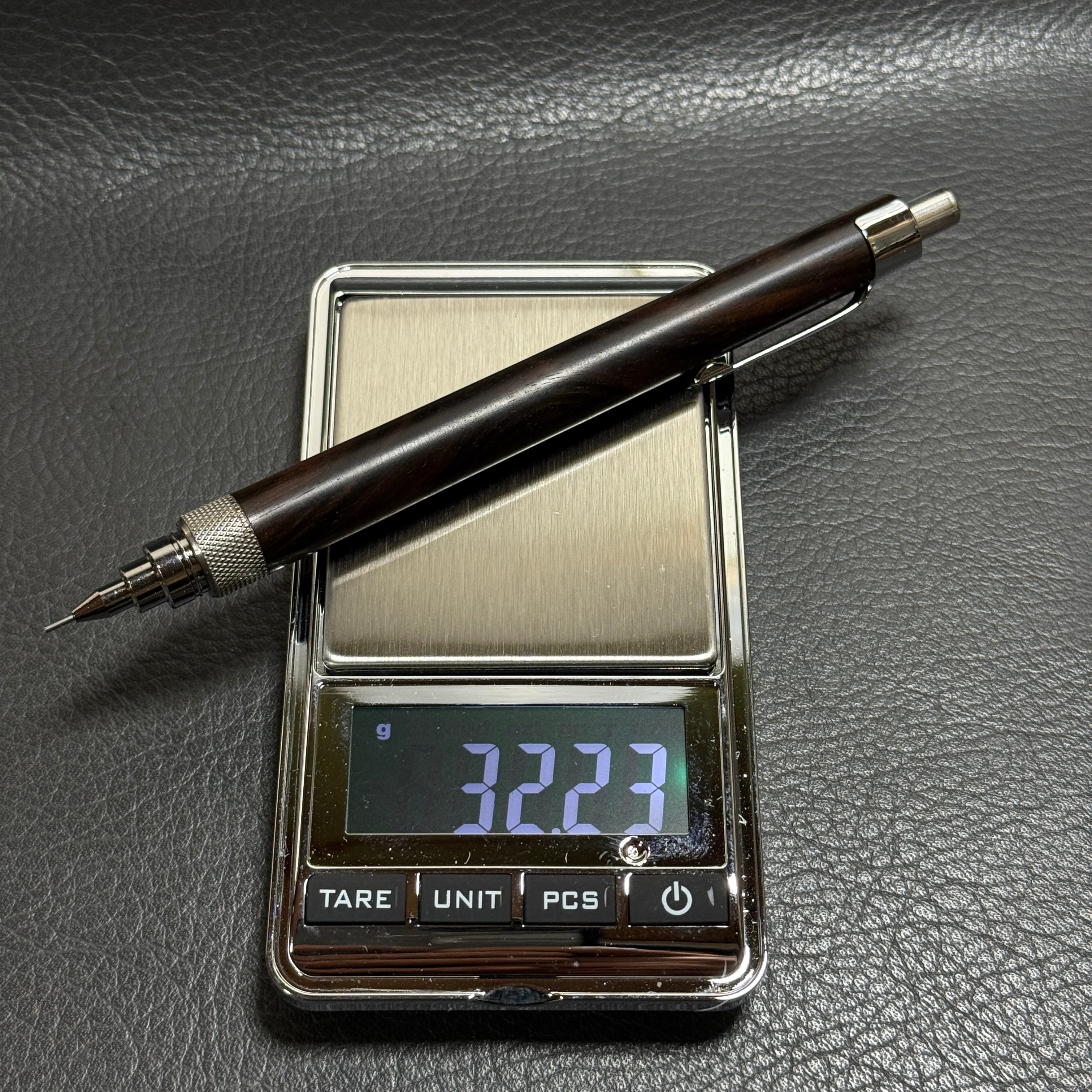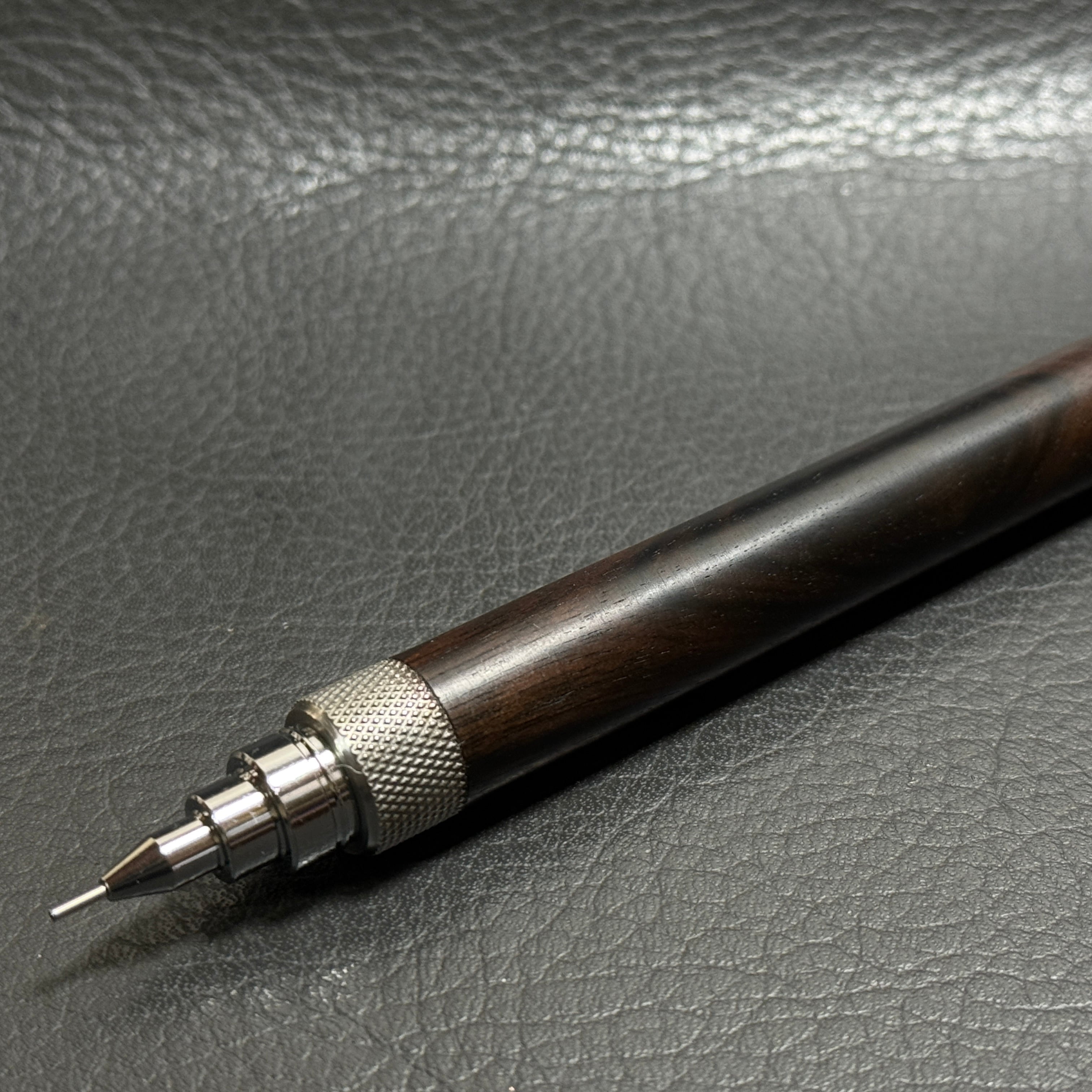 591黒檀木製シャーペン 超低重心ローレット ステンレス