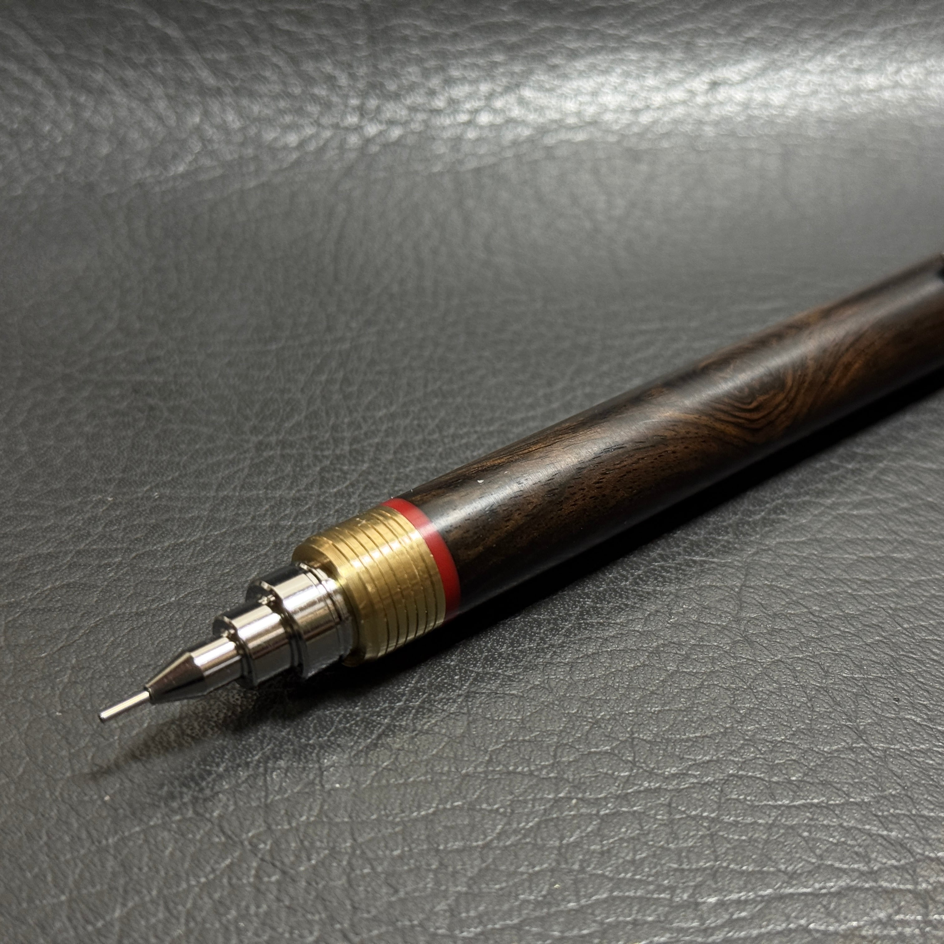 596アフリカンブラックウッド 木製シャーペン 超低重心溝つき 真鍮 人工大理石