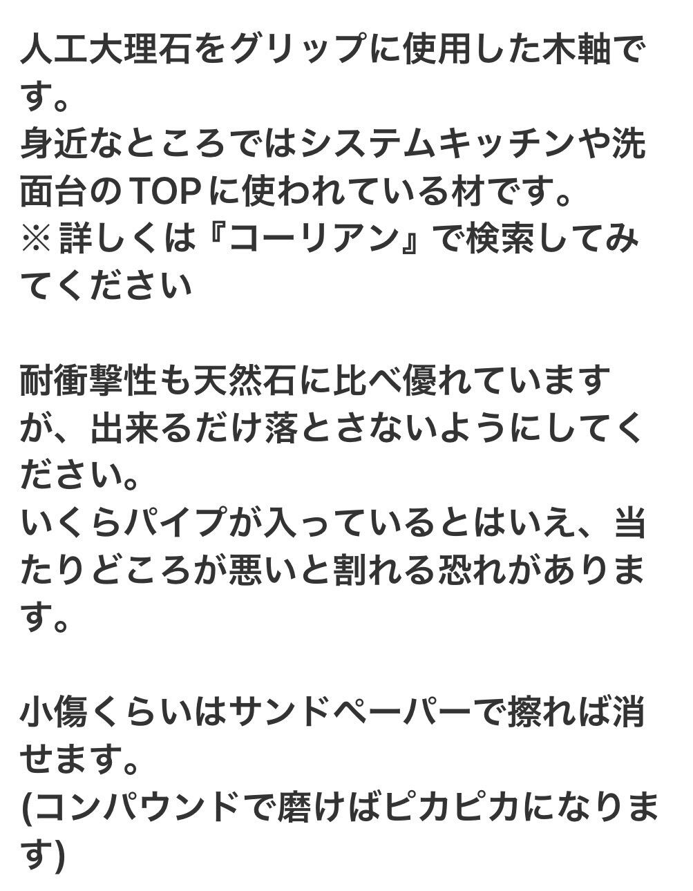 グリップに人工大理石を使っています。