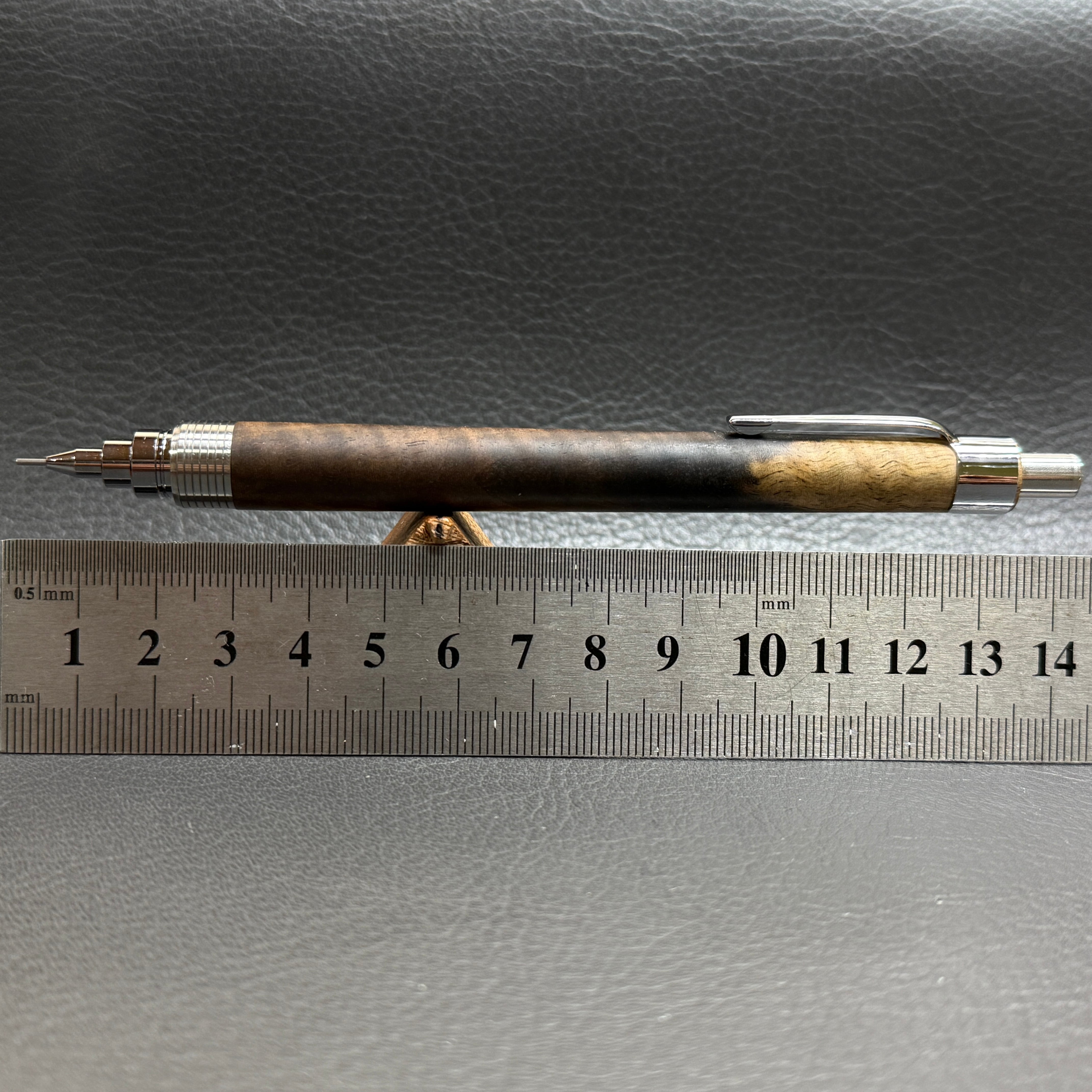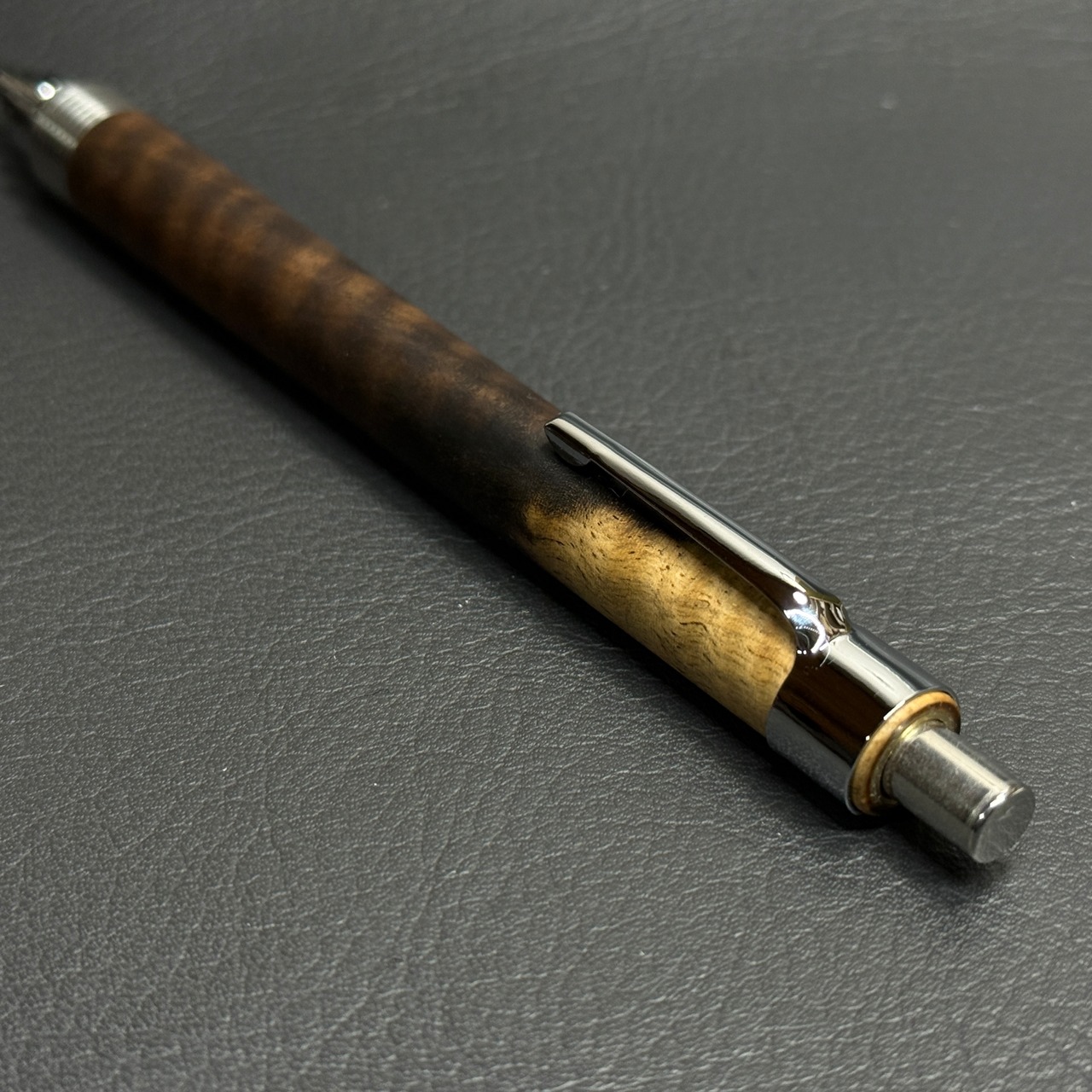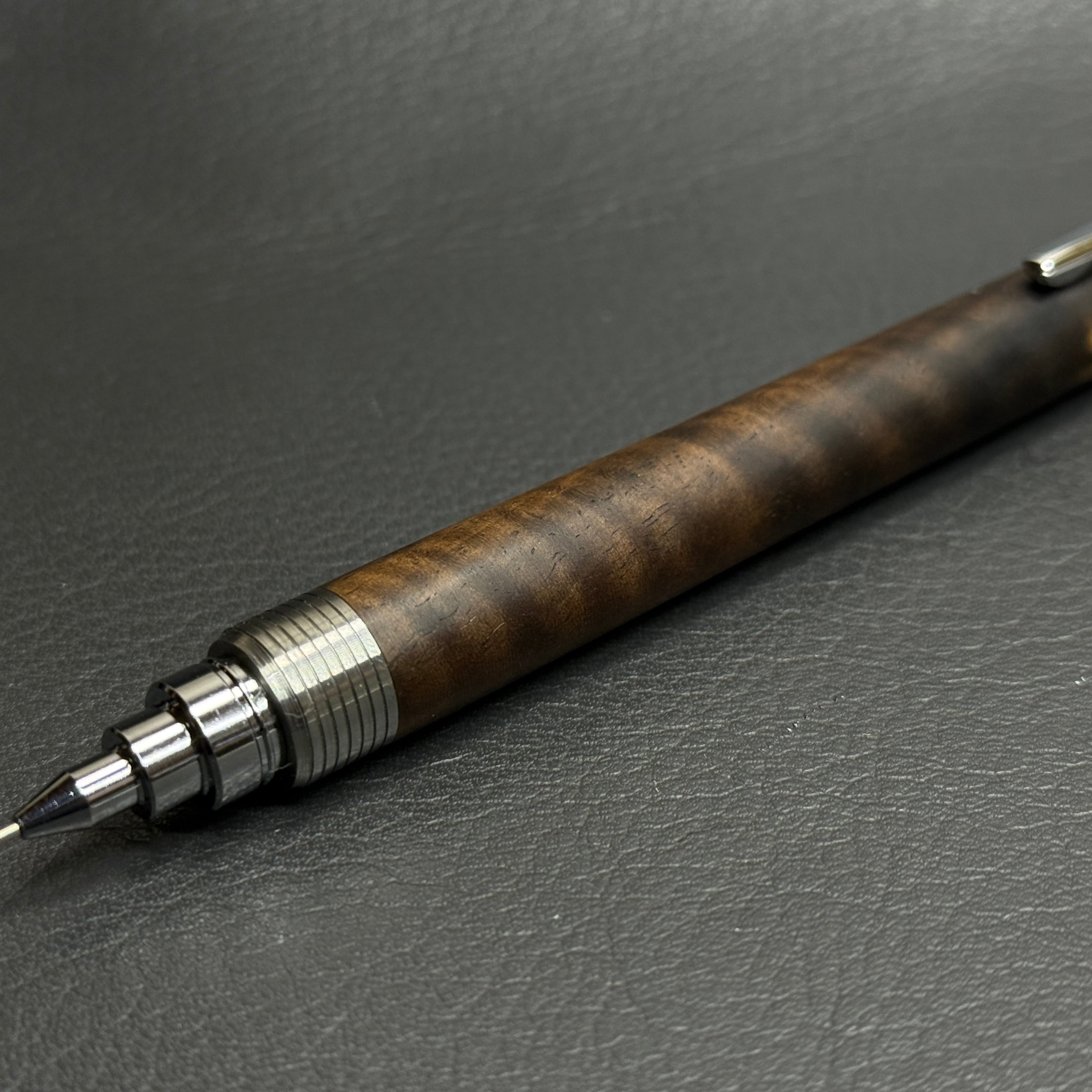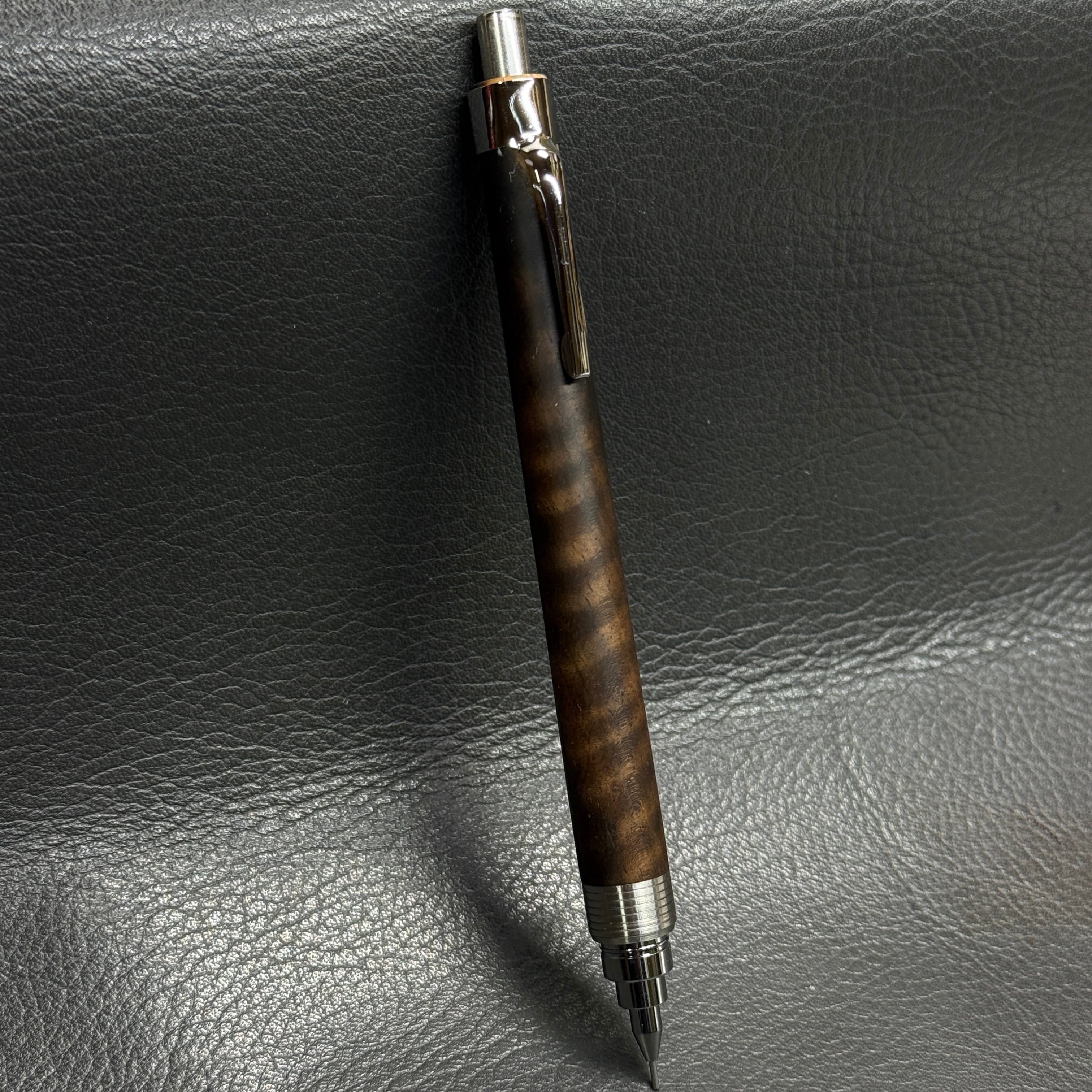 縮杢が入った黒柿で製作したシャーペンです。