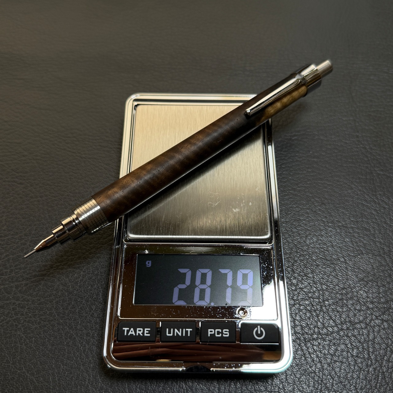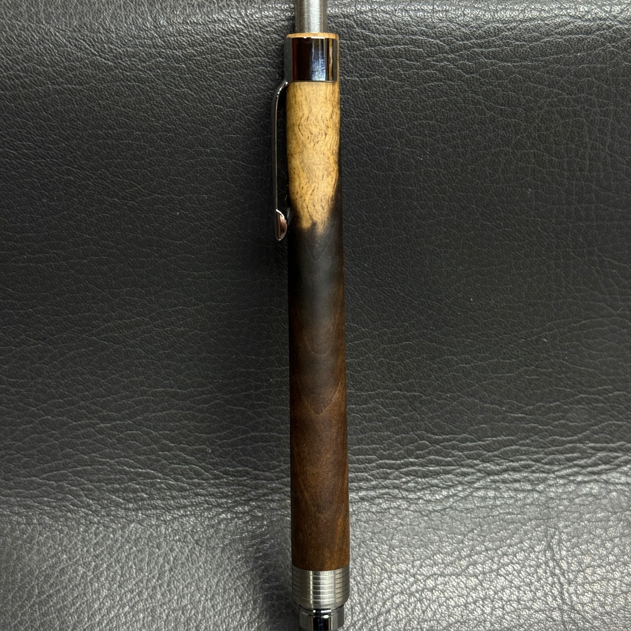 628黒柿カーリー黒白 超低重心シャーペン ステンレス 溝つき