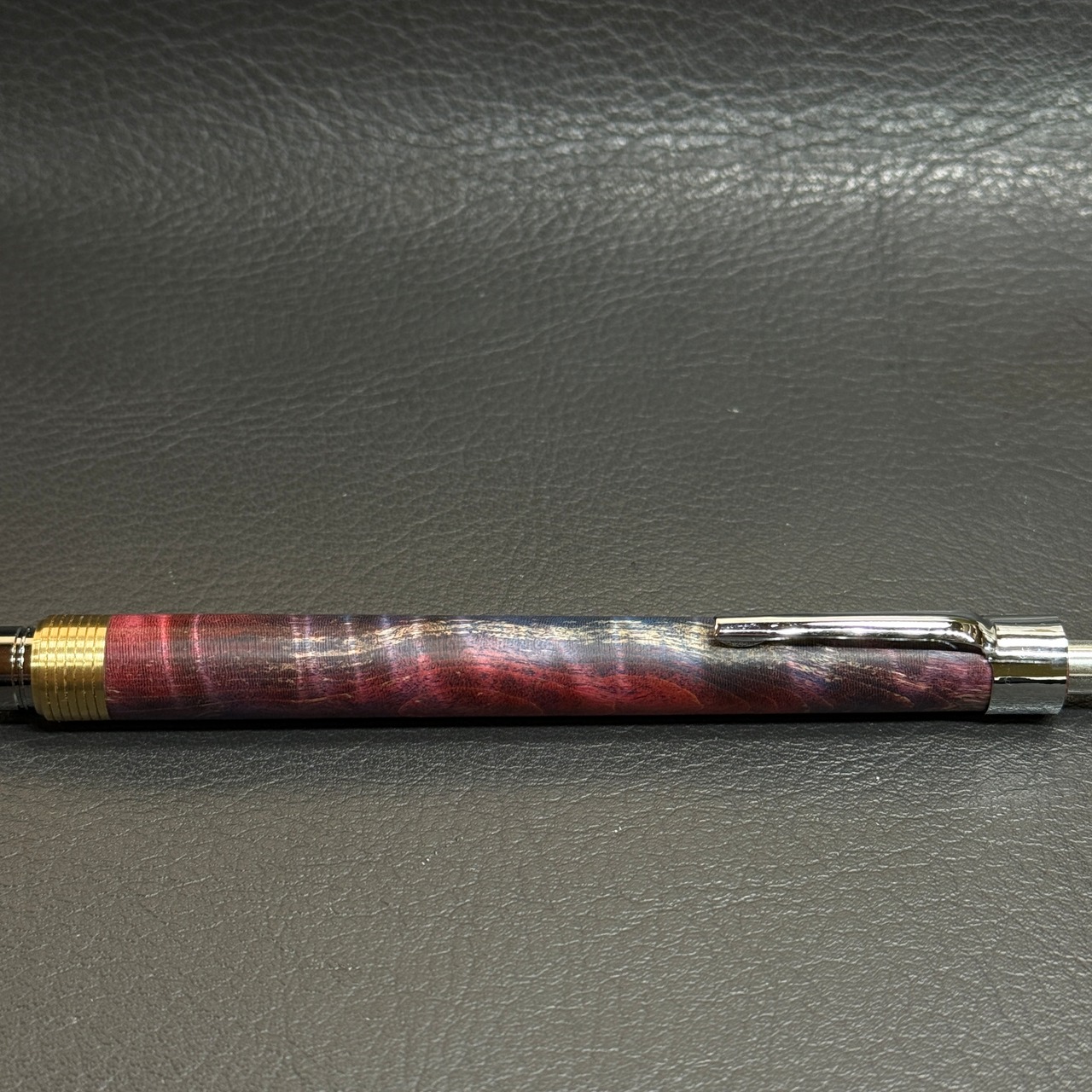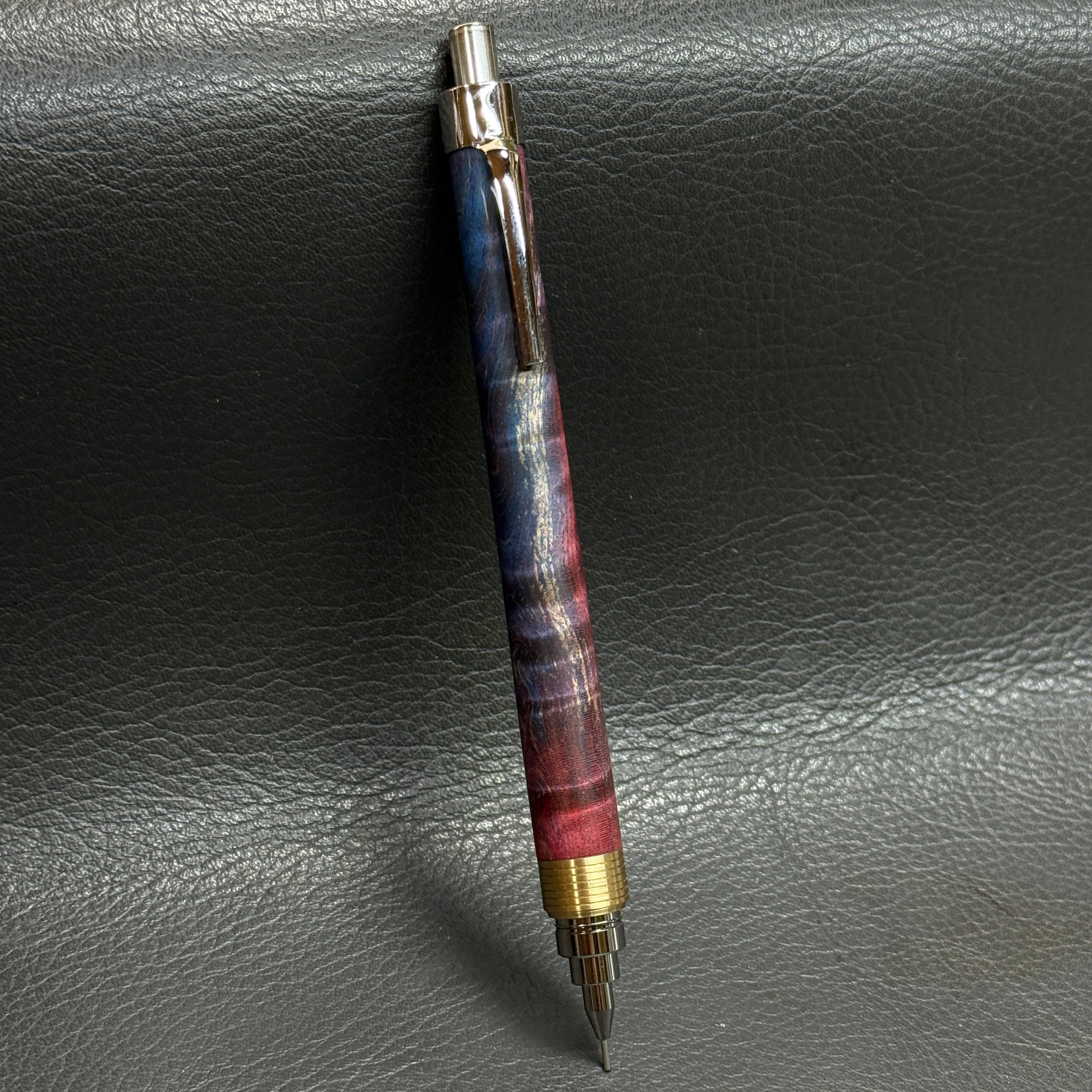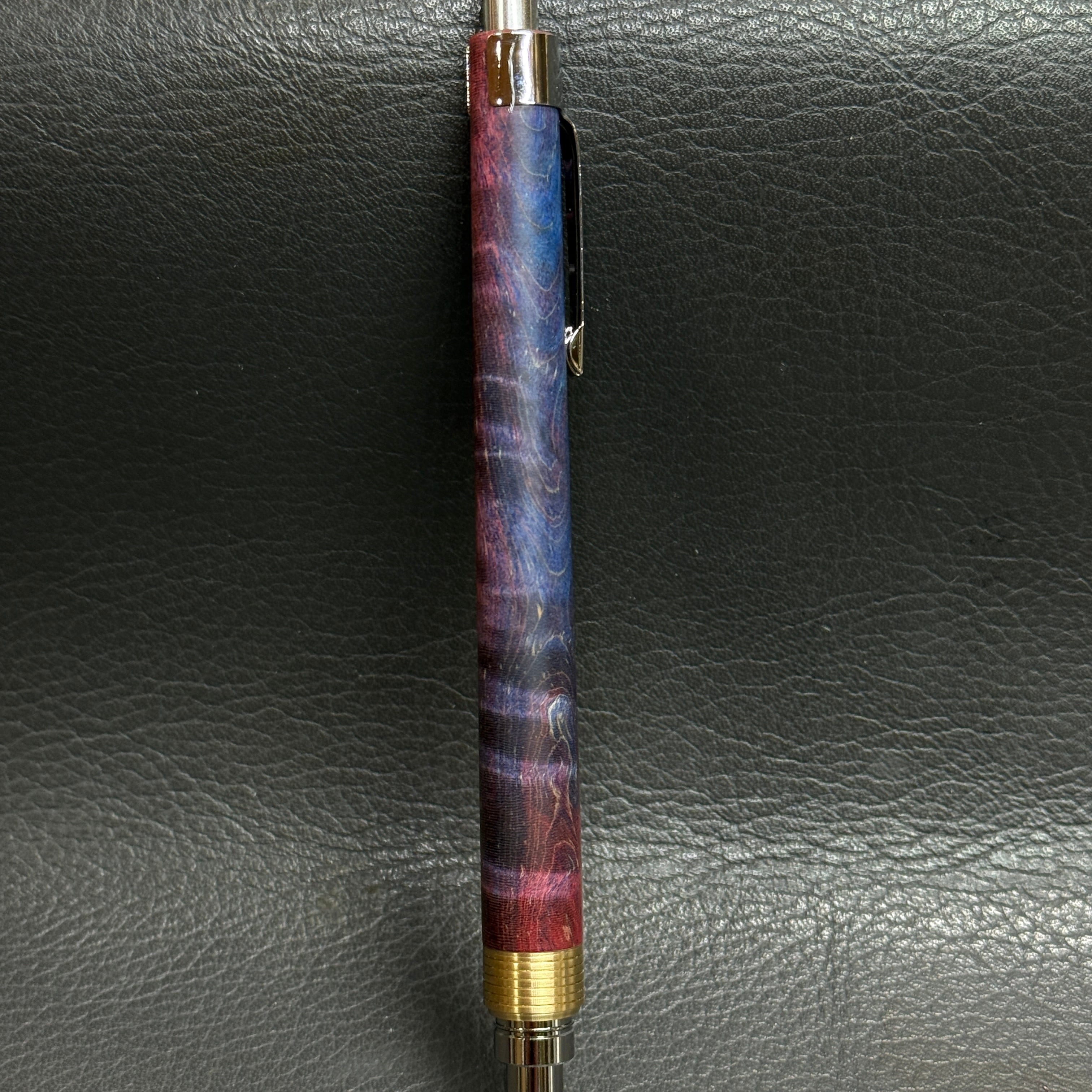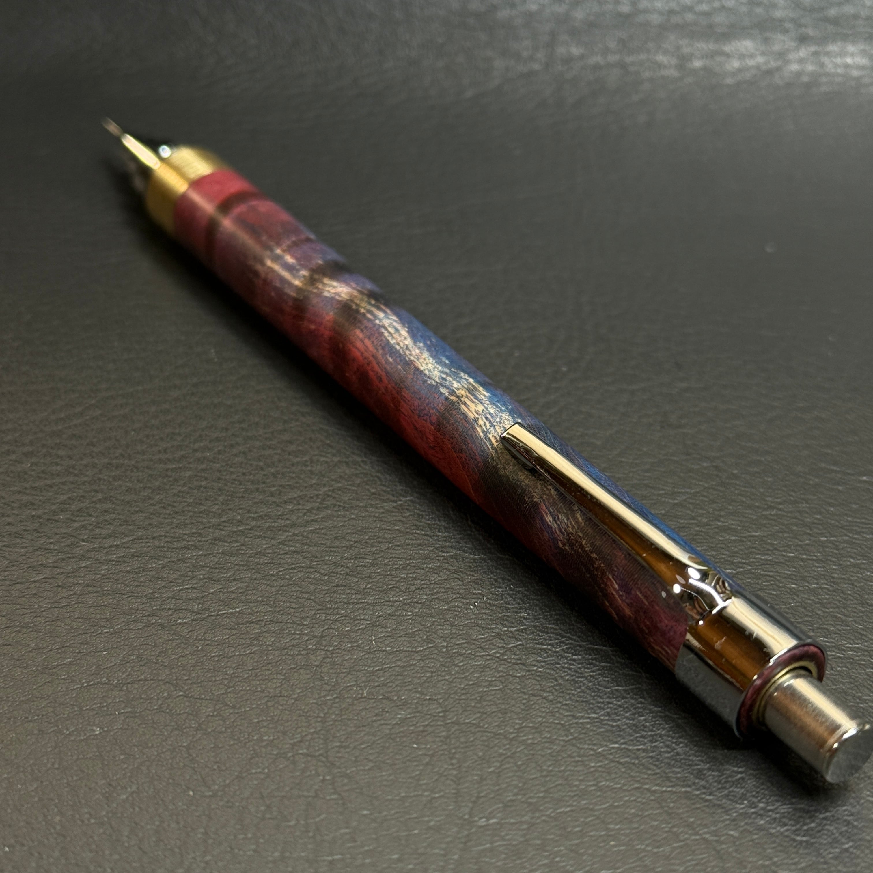 青と赤が混ざり合った柄のスタビで製作したシャーペンです。