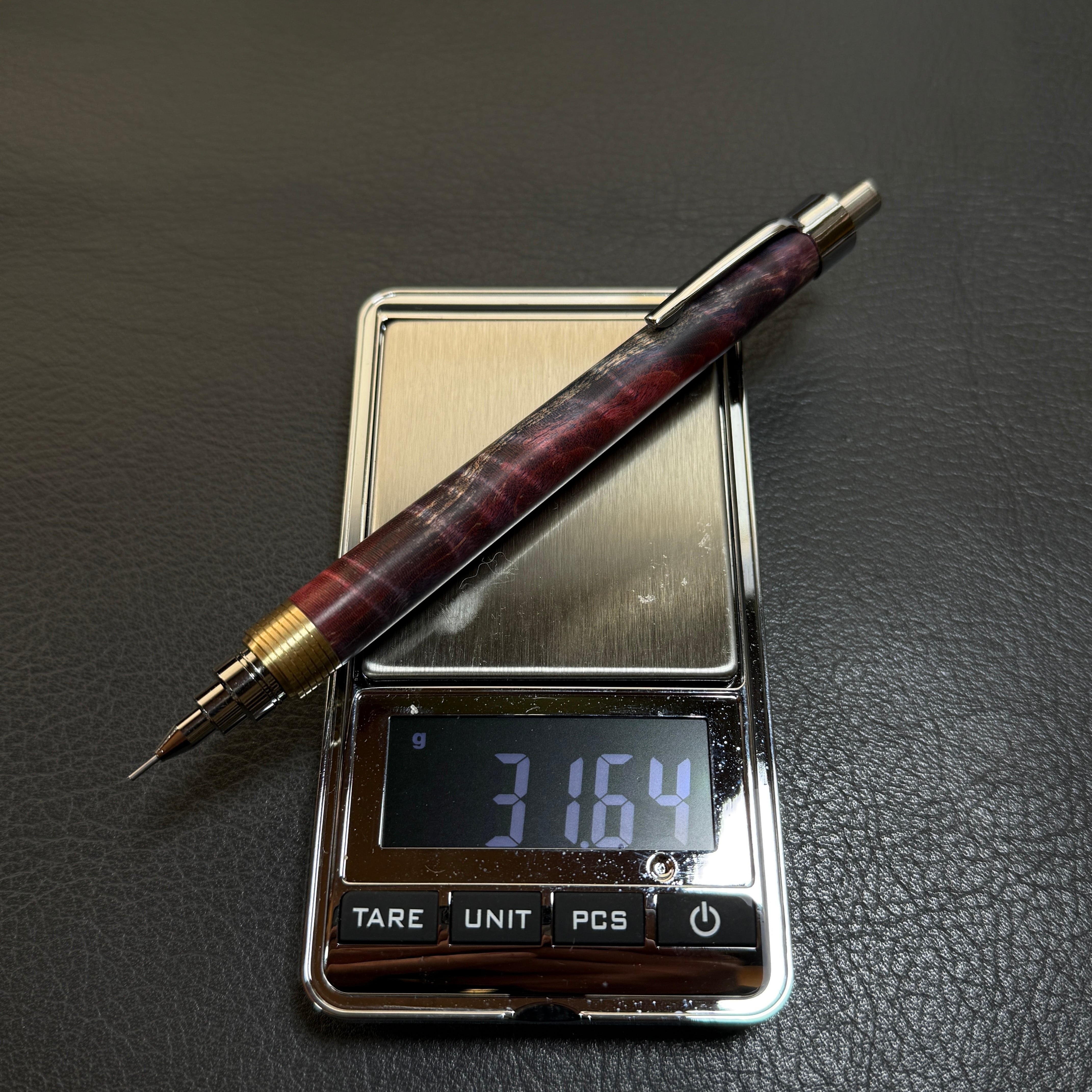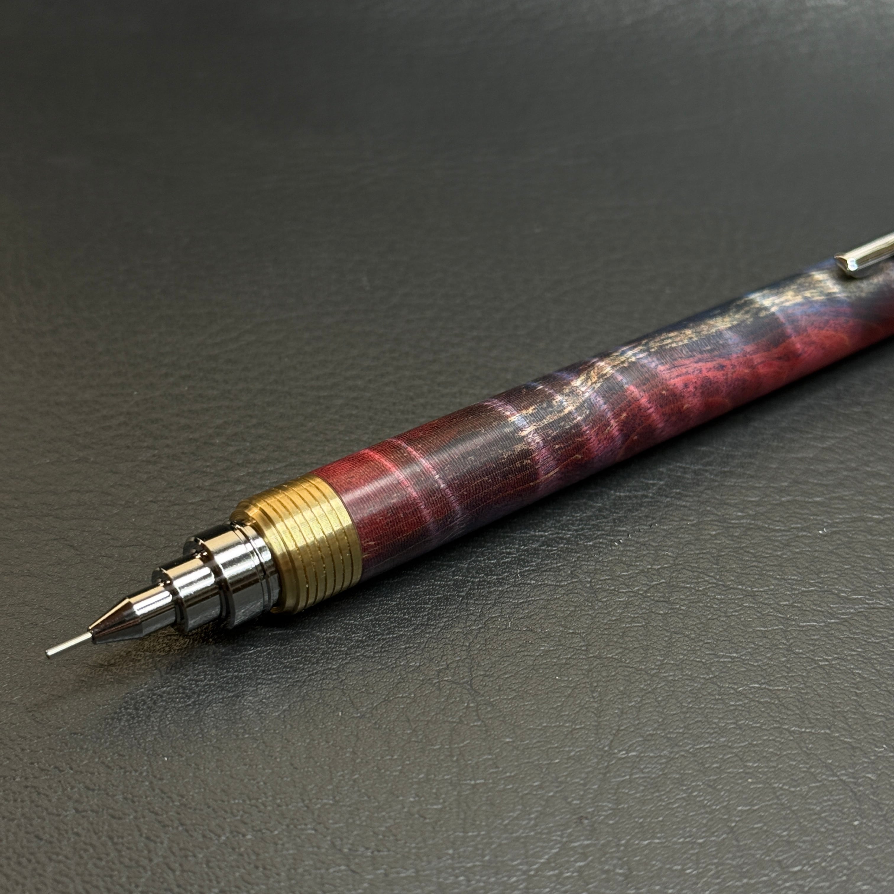 623栃トラ杢スタビ 超低重心シャーペン 真鍮溝つき