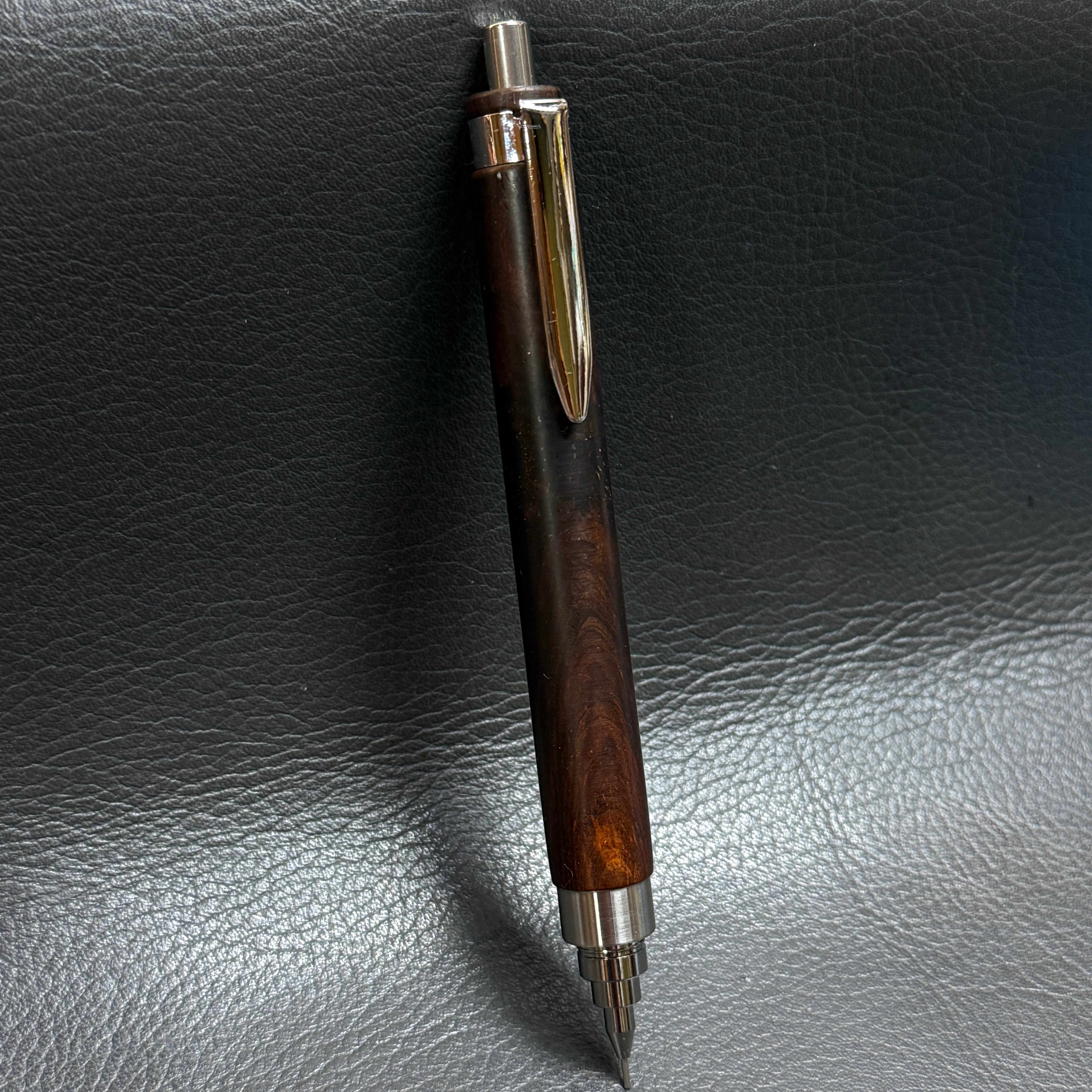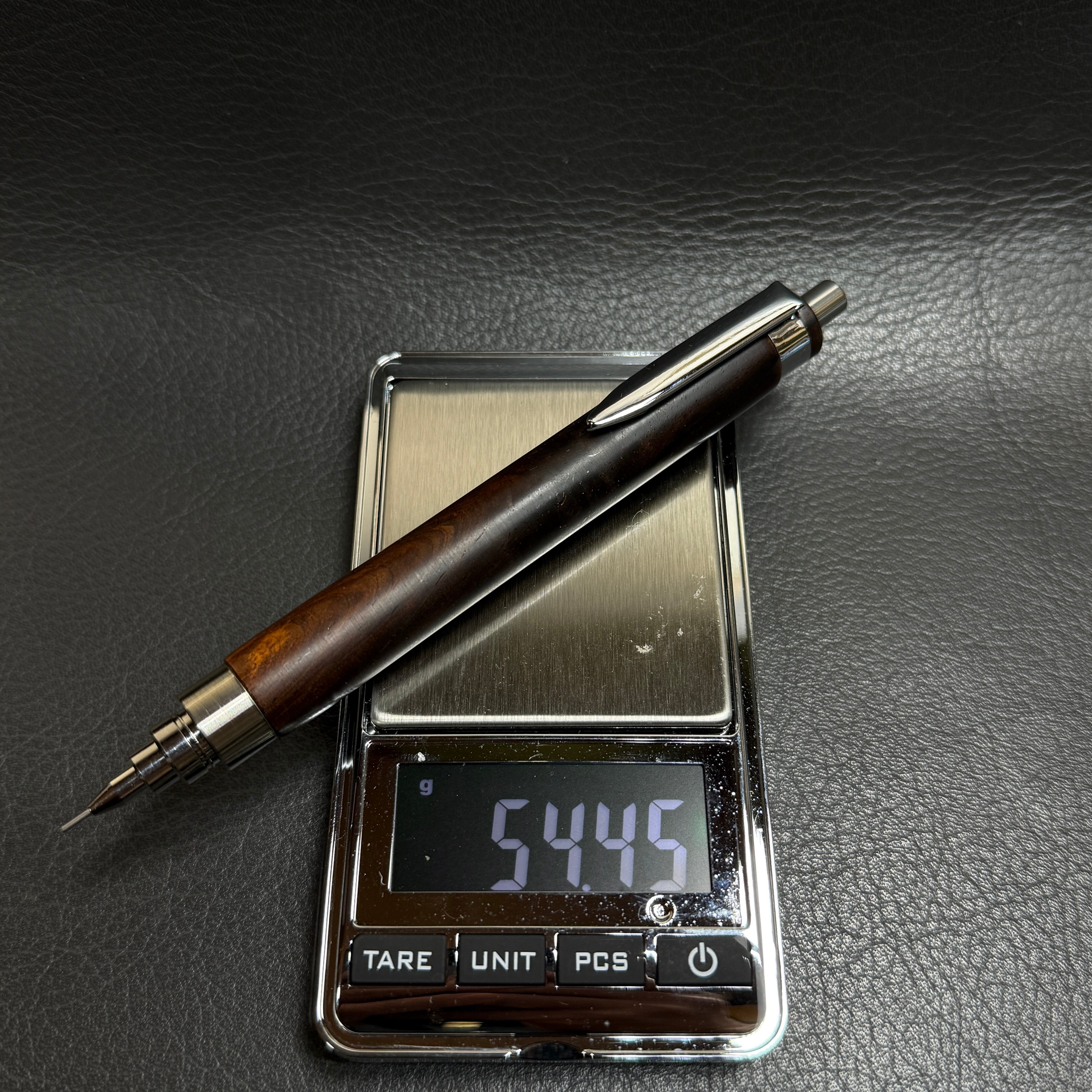 色の濃いウォールナットで製作した最重量シャーペンです。