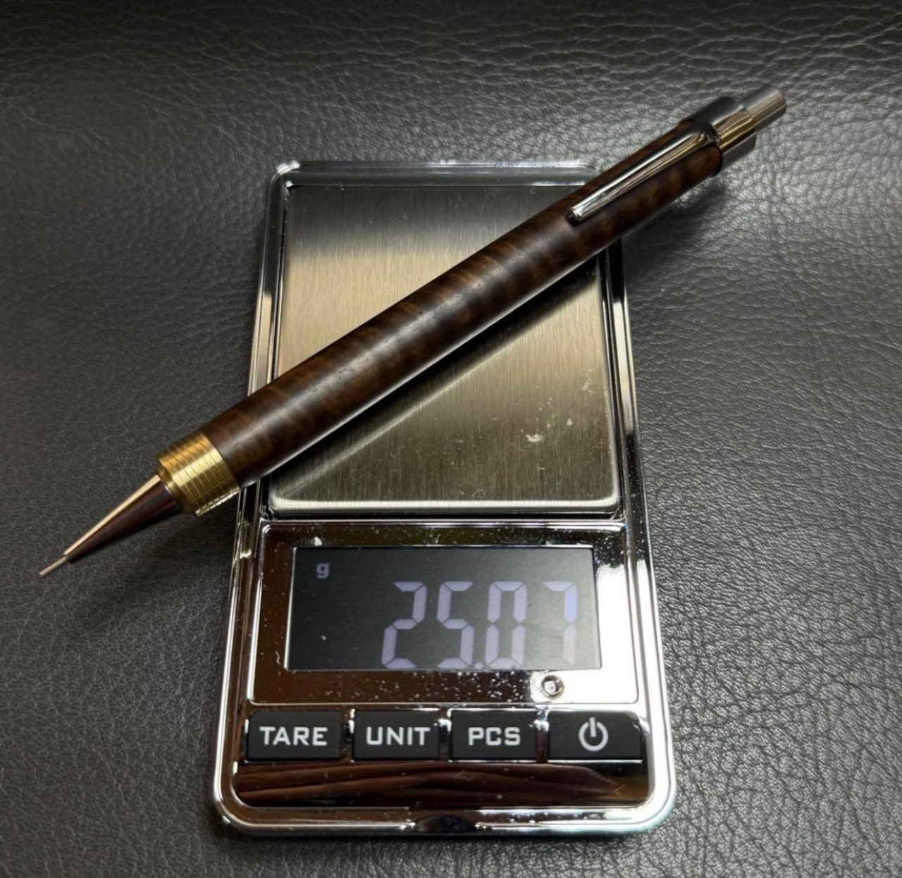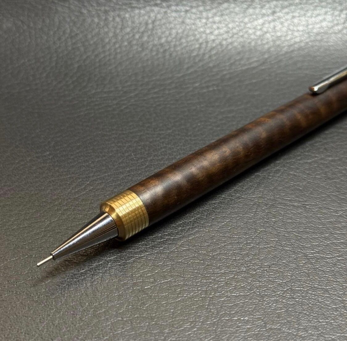 230黒柿カーリー 強低重心シャーペン 小R溝つき 先端金属Φ11 真鍮