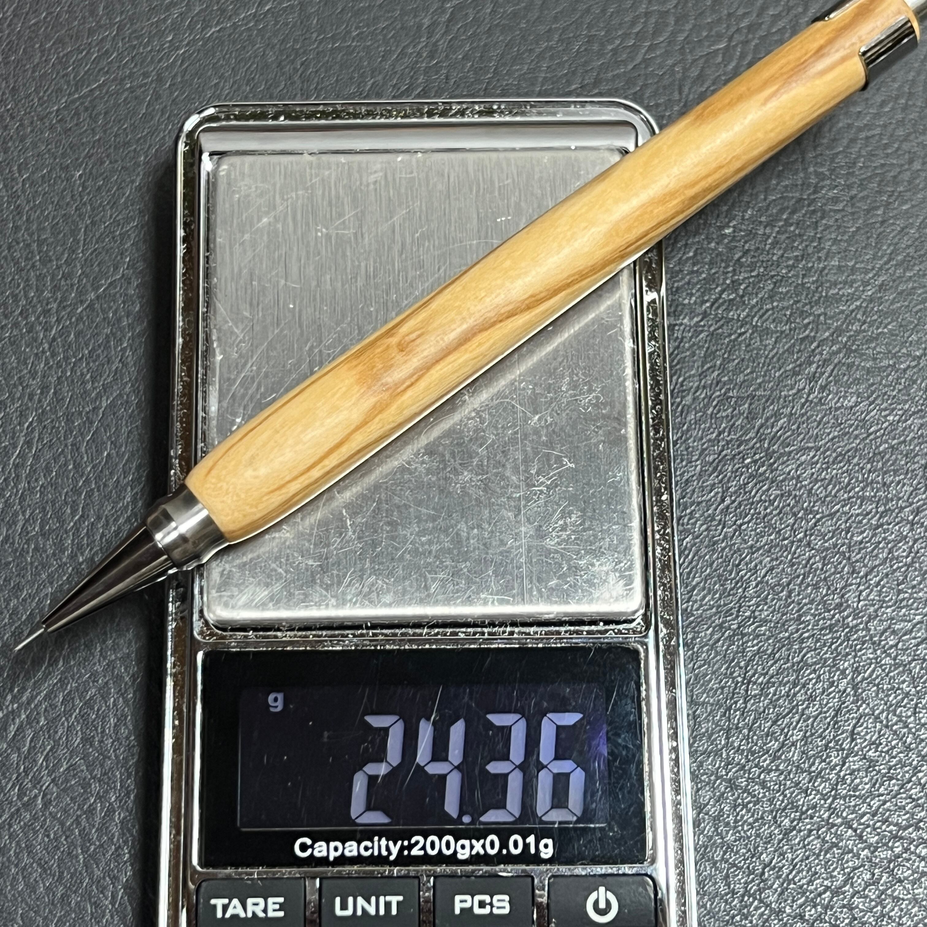 76オリーブウッド木製シャーペン 強低重心(?タイプ) ステンレス