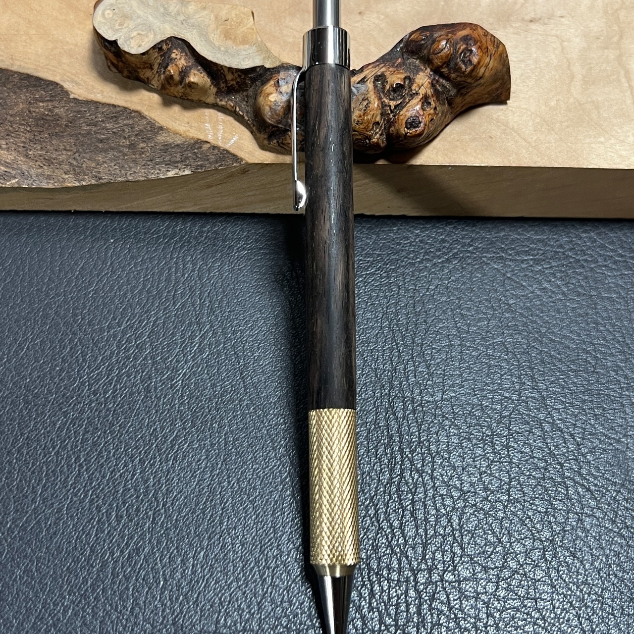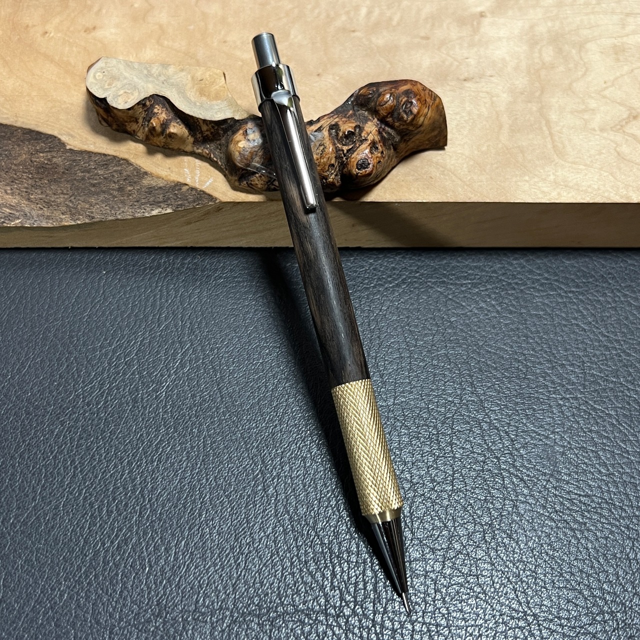 115黒柿 木製シャーペン 持ち手ローレットタイプ 強低重心 真鍮