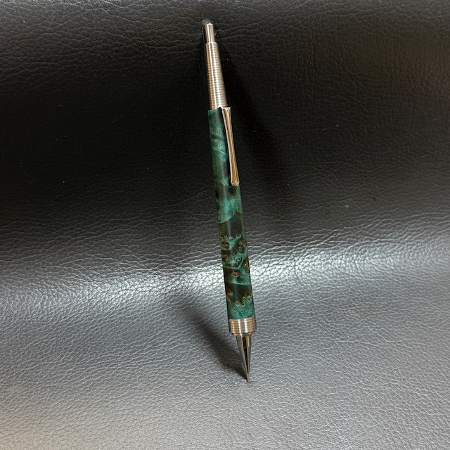 タモ波杢スタビで作ったシャーペンです。(グリーン色スタビ液) ◉サイズ 最大直径11.9mm(ペン先から40mm) 長さ144(木軸114) (重さ・重心は写真でご確認お願いします) 【発送方法を追加しました】 宅急便コンパクト(補償あり・追跡番号あり)か、ゆうパケットポストmini(補償なし・追跡番号あり)でお送りさせて頂きます。 ※どちらかお選びください。